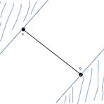 2차원 좌표 평면에 정수 좌표 (x, y)로 이루어진 서로 다른 점 $N$개가 있다고 하자. 이 점들 중 유클리드 거리계에서 가장 먼 두 점을 $O(N \lg N)$ 시간복잡도로 구할 수 있다. Claim 1) 가능한 모든 기울기에 대해, 그 기울기의 직선에 닿는 양 끝 점의 거리 중 최대값이 가장 먼 두 점의 거리다. 증명) $N$개의 점들 중 가장 먼 두 점을 $a$와 $b$라 하자. $a$와 $b$를 잇는 선분을 그리고 수직한 직선을 그렸을 때 아래와 같이 된다. 파란색 직선 위를 포함하여 파란색 영역에 $a$와 $b$ 이외에 다른 점들은 존재하지 않다. 만약 존재한다고 가정하면 $a$와 $b$가 가장 먼 두 점이라는 가정에 모순된다. 따라서 가능한 모든 기울기에 대해, 그 기울기의 직선에 닿는 양..